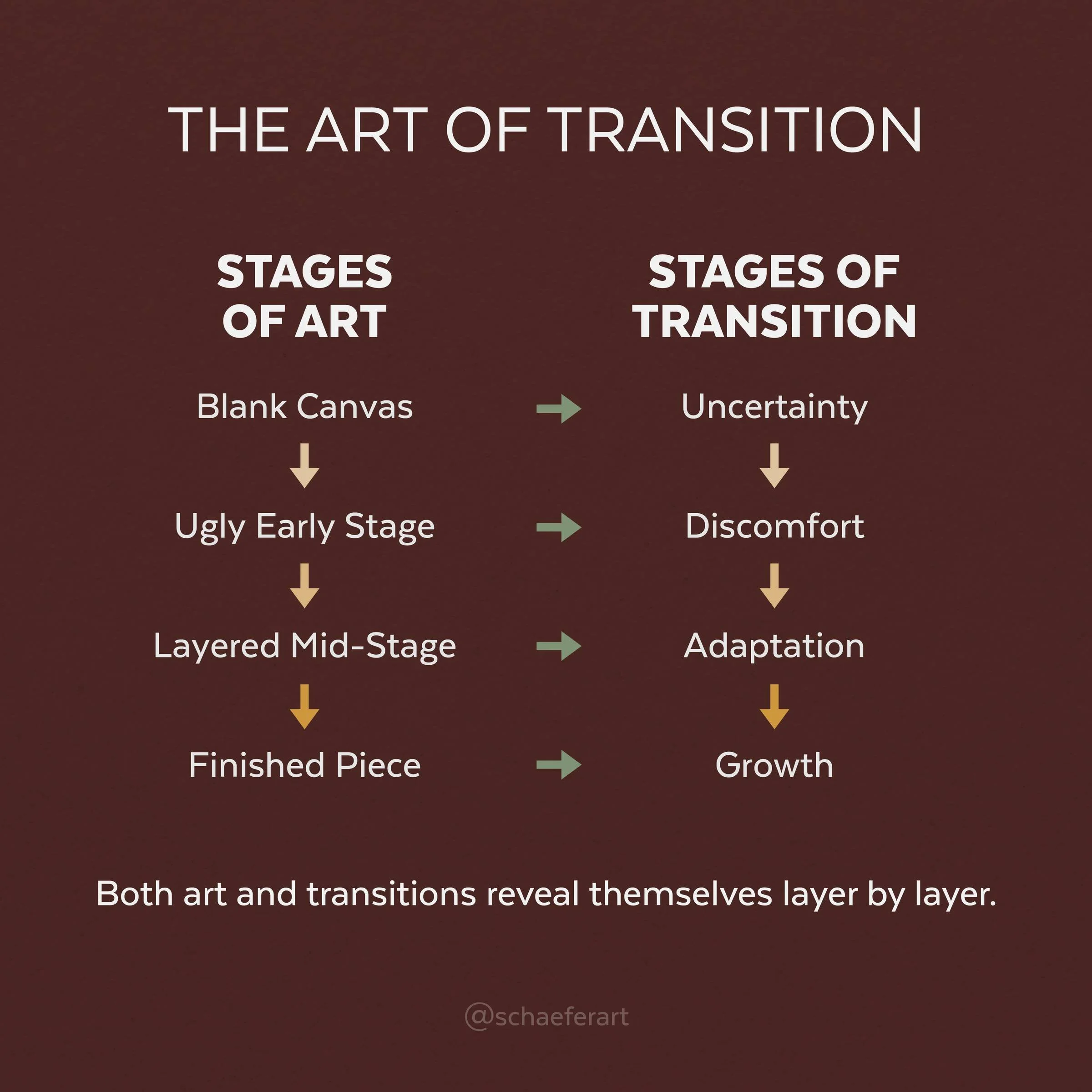 Every transition begins as a blank canvas. The only way forward is to start painting.